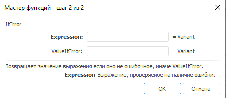 | =IfError(J11:K12, J7:K10) | True | Значение левой верхней ячейки диапазона выражений, который не содержит ошибок. |