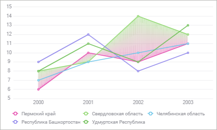 Коридор диаграммы - выделенная часть области построения, находящаяся между двумя рядами линейной диаграммы. Доступно создание нескольких коридоров.