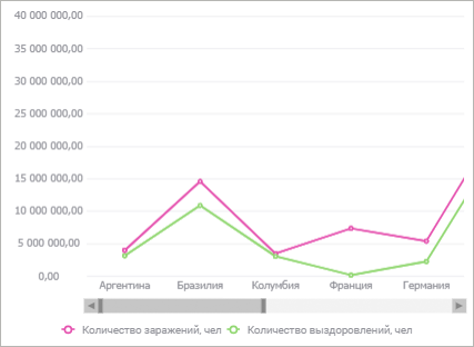Примечание. Доступно только для линейной, смешанной, точечной, коробчатой, каскадной, ступенчатой диаграмм, гистограммы, диаграммы с областями и коробчатой диаграммы с линейными рядами.