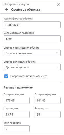 Для настройки стандартных свойств объекта используйте группу параметров «Свойства объекта» боковой панели: