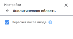 Установите флажок «Пересчёт после ввода» для включение расчёта вычислений по отредактированным данным без предварительного сохранения данных в источник.