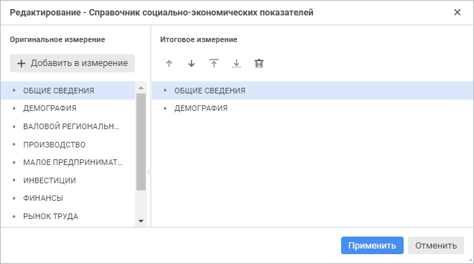 Для редактирования исходного справочника, соответствующего измерению, выполните одно из действий: