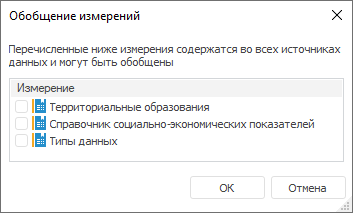 Изначально при настройке отображения данных из нескольких источников отметка в общих измерениях и отметка в частных измерениях из первого источника соответствует отметке, настроенной в используемых источниках. Отметка в частных измерениях второго и последующих источников соответствует отметке из сохранённых представлений используемых источников.
