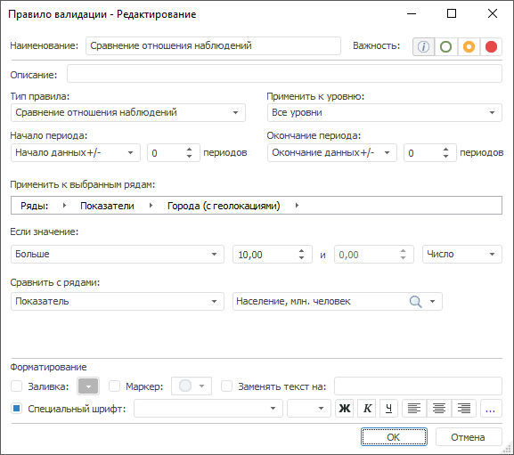Примечание. Правило валидации доступно, если источником данных является база данных временных рядов или стандартный куб с календарным измерением.