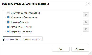 выполните команду «Выбрать столбцы» в контекстном меню заголовков столбцов в структуре обновления. После чего будет открыто окно «Выбрать столбцы для отображения»: