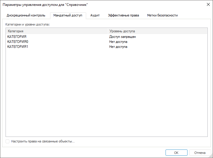 Настройка параметров при мандатном доступе позволяет присваивать объектам уровни доступа к хранящейся в них информации.