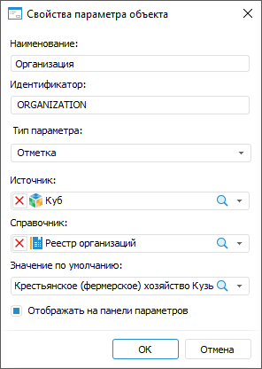 Примечание. После выбора куба в раскрывающемся списке «Справочник» будут доступны только те справочники, которые состоят в выбранном кубе.