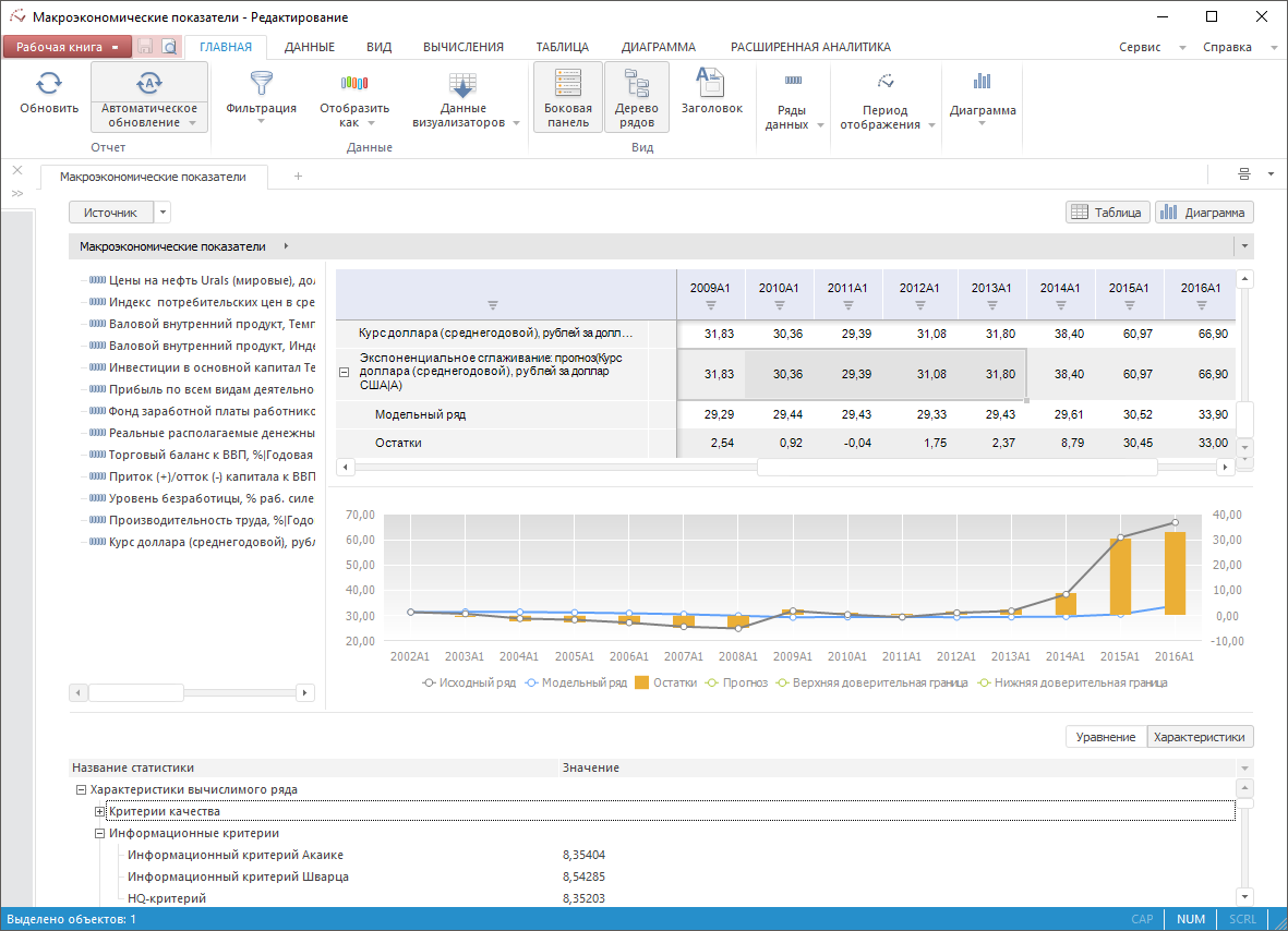 Инструмент «Анализ временных рядов» предназначен для исследования данных, изменяющихся во времени.