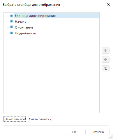 Примечание. Напротив столбца «Единица лицензирования» невозможно снять флажок и поменять порядок столбца.