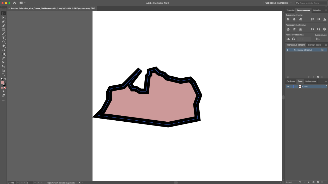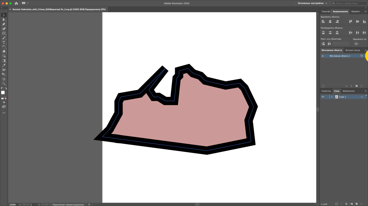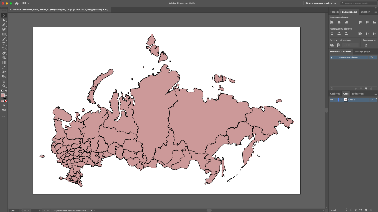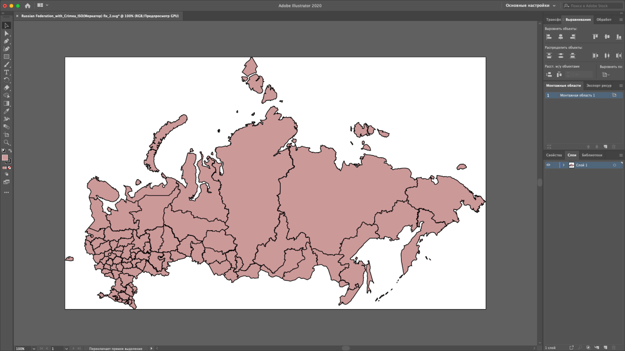 Для точного определения координат границ территорий подготовьте SVG-топооснову в любом редакторе векторной графики. Рассмотрим подготовку SVG-топоосновы с помощью Adobe Illustrator: