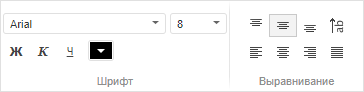 групп кнопок «Шрифт» и «Выравнивание» на ленте инструментов в веб-приложении: