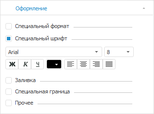 Для изменения настроек шрифта установите флажок «Специальный шрифт». Будут доступны настройки шрифта для выделенного элемента таблицы.