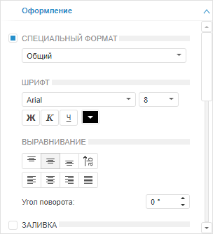 Поворот текста в ячейке. Задайте при необходимости поворот текста относительно ячейки. Данная настройка доступна только для веб-приложения: