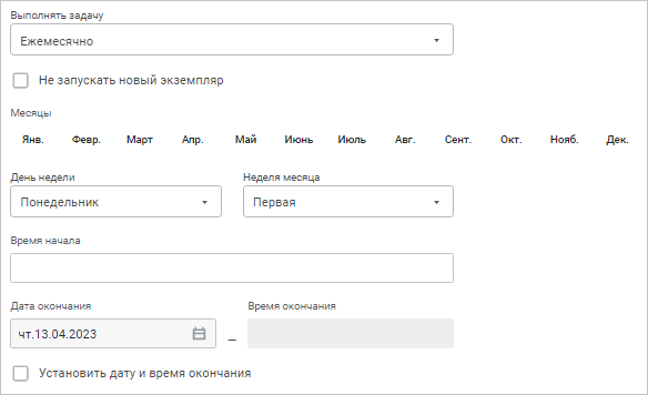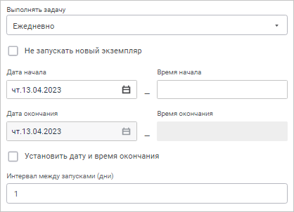 Время окончания. Задаёт время последнего выполнения задачи. Доступно только в веб-приложении;