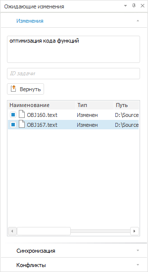 Примечание. Синхронизация доступна только для системы управления версиями Git.