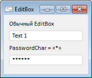 Основным применением компонента EditBox является ввод значений каких-либо параметров.