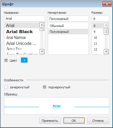Device | Свойство Device определяет, какие шрифты будут входить в список доступных шрифтов при инициализации диалога выбора шрифта. |