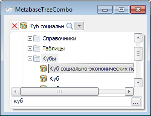 Компонент MetabaseTreeCombo предназначен для отображения дерева объектов репозитория в виде раскрывающегося списка.