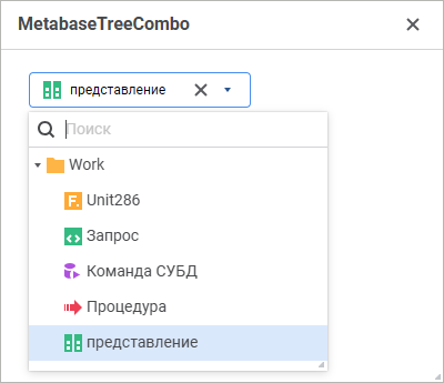 Компонент MetabaseTreeCombo реализует раскрывающийся список, отображающий дерево объектов репозитория.