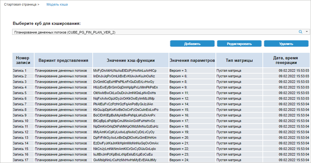 После выполнения действия будет открыта вкладка «Модель кэша»: