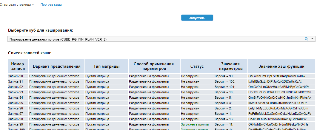 Кэш по параметрам. Каждой комбинации значений параметров в оперативной памяти создается отдельная локальная матрица. Запись значений в локальные матрицы выполняется параллельно, каждый поток в свою матрицу. Используйте данный вариант сохранения при одновременном выполнении высоконагруженных расчетов или загрузки данных по разным сценариям. Сохранение данных для всех сценариев выполняется одновременно, каждый из них идет в своем потоке в свою локальную матрицу. Разные локальные матрицы можно объединить в виртуальном кубе за счет виртуализации данных и использовать инструменты отчетности для визуализации общего результата и сравнения матриц между собой.