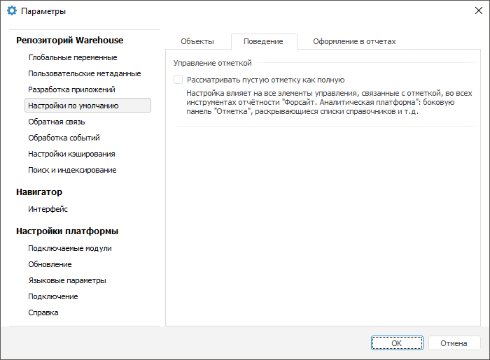 После выполнения действий заданное поведение по умолчанию будет использоваться в инструментах продукта «Форсайт. Аналитическая платформа».