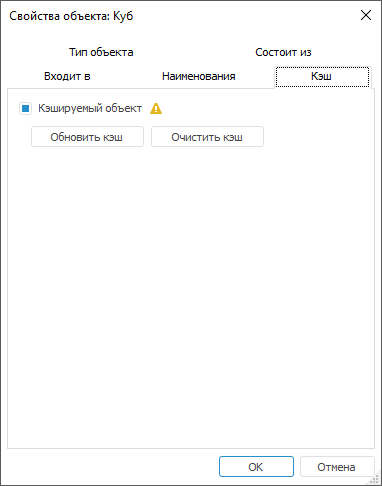 Примечание. После изменения структуры рекомендуется удалить сохраненные экземпляры, используя кнопку «Очистить кэш». После этого будут сохраняться экземпляры для новой структуры объекта.
