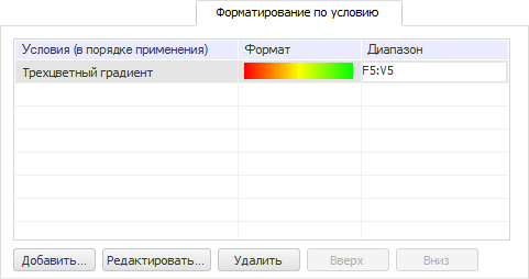 Вкладка «Форматирование по условию» предназначена для настройки расширенного форматирования ячеек по заданному условию.