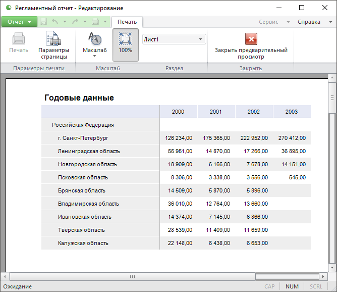 Предварительный просмотр и печать объекта
