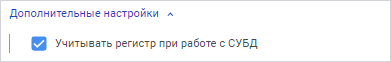 Учитывать регистр при работе с СУБД. Установите флажок для работы с объектами и их полями в СУБД с различным регистром символов в их физическом имени. Параметр используется при раздаче прав на уровне СУБД и учитывается при соединении и операциях с базой данных;