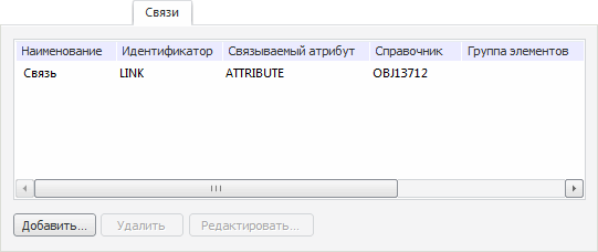 Для создания и настройки связей по атрибутам с другими справочниками НСИ используйте вкладку «Связи» на вкладке «Описание» в окне редактируемого справочника НСИ: