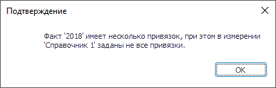Если у фактов несколько привязок, а измерения привязаны не все, то сохранить куб нельзя, при этом отобразится соответствующее сообщение. Пример сообщения в настольном приложении: