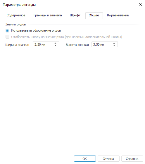 Для определения формата значков легенды перейдите на вкладку «Общее» окна «Параметры легенды».