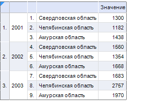 При настройке нумерации также следует учитывать количество измерений, расположенных по строкам/столбцам. Если по столбцам/строкам расположено два измерения и для второго настроена сквозная нумерация, то каждый повторяющийся элемент будет иметь уникальный порядковый номер: