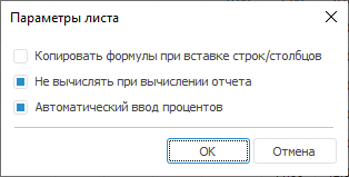 Не вычислять при вычислении отчёта. При установленном флажке выбранный лист не будет вычисляться при вычислении отчёта;