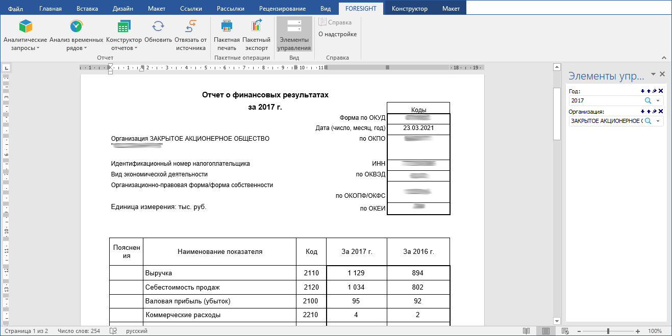 Начало работы с надстройкой Foresight Add-in for Word | Построение отчёта с использованием надстройки