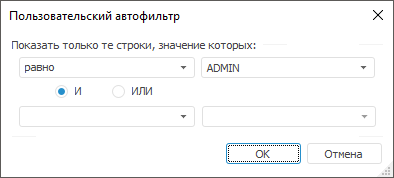 при установке переключателя «И» будут отображаться строки, удовлетворяющие обоим условиям;