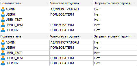 Для включения/отключения отображения сетки установите/снимите флажок «Отображать сетку» в главном меню «Вид». По умолчанию список пользователей отображается без сетки. Ниже приведен пример отображения без сетки и с сеткой: