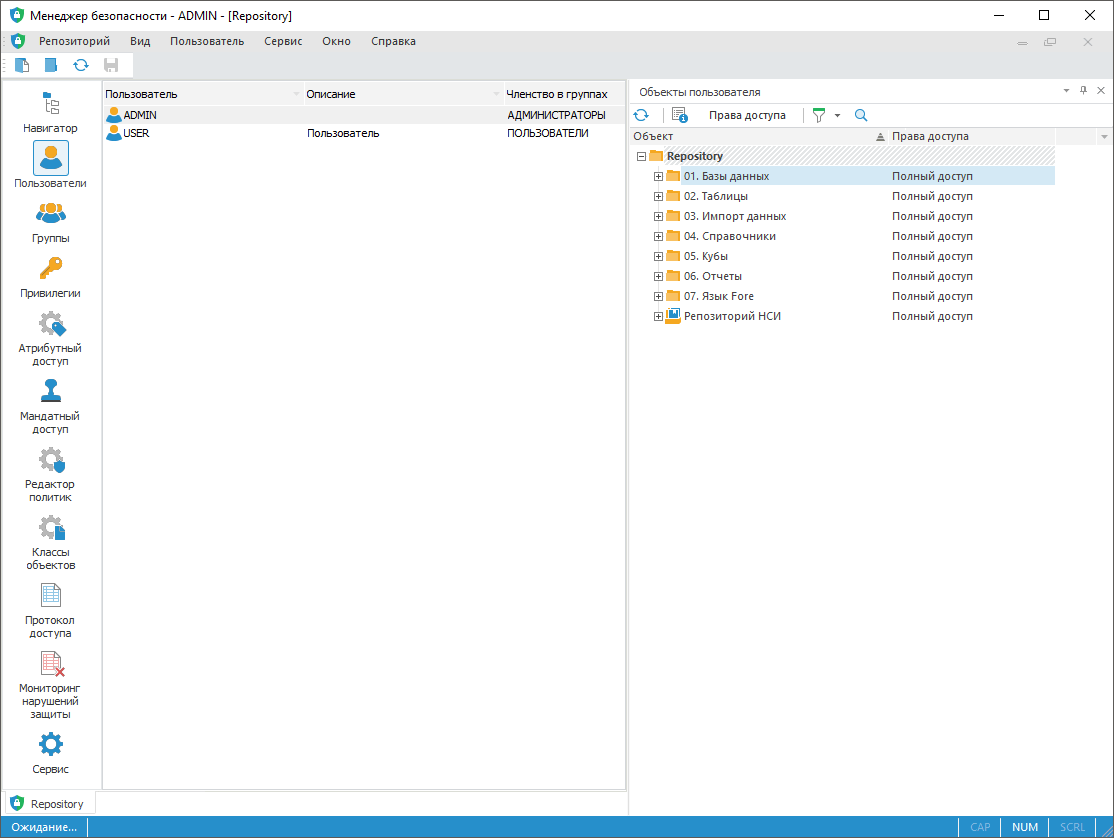 Пользователи являются субъектами безопасности системы, которые наделены определенными правами для работы с объектами репозитория. Права могут быть получены явно (если права определены отдельно для пользователя) и неявно (если права унаследованы от группы пользователей).