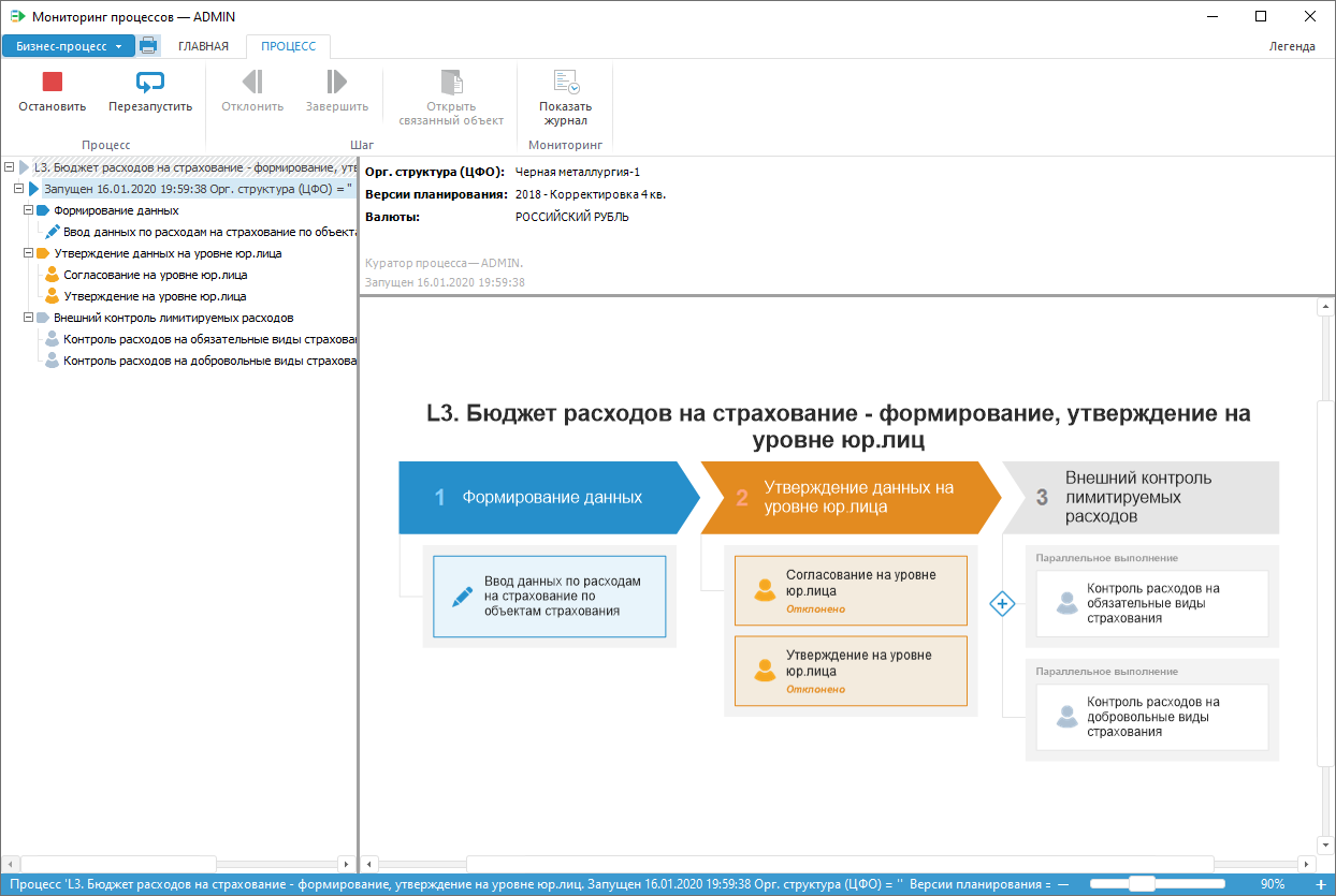 Мониторинг процесса | Выполнение шагов процесса в автоматическом режиме | Выполнение шагов процесса в ручном режиме | Выполнение шагов подпроцесса | Журнал выполнения этапов/шагов процесса