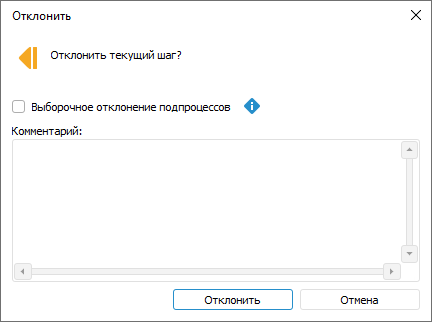 введите комментарий в поле «Комментарий» для пояснения отклонения шага процесса.