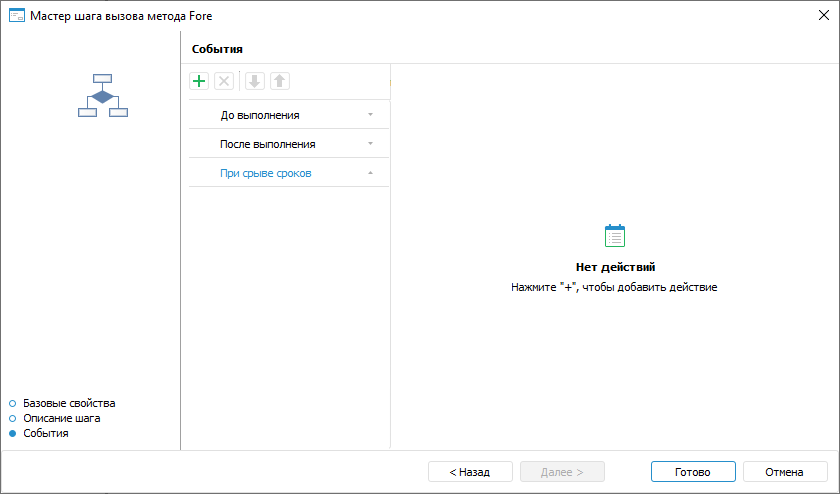 Для создания шага по вызову метода Fore откройте мастер шага вызова Fore-метода.