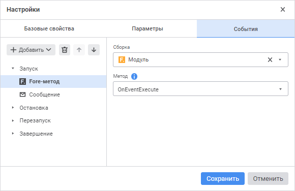 Настройка событий процесса при выполнении определенного шага выполняется на вкладке «События» окна «Настройки».