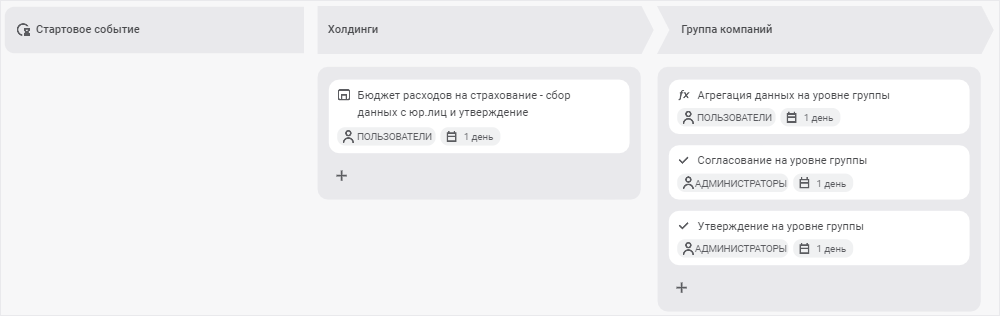 Для добавления стартового события в окне «Настройка бизнес-процесса» выполните следующие действия: