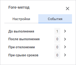 Для настройки событий, выполняемых автоматически при запуске выполнения шага или после его завершения, используйте вкладку «События» панели параметров шага: