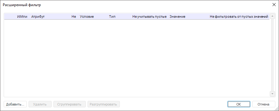 Если для измерения уже настроена фильтрация, то в заголовке отображается кнопка . Её нажатие открывает диалог «Расширенный фильтр», в котором можно посмотреть и изменить текущие условия фильтрации измерения.