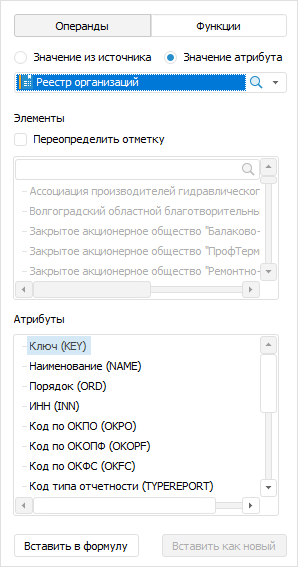 1. В списке «Атрибуты» выберите атрибут, на основе значений которого формируется операнд.