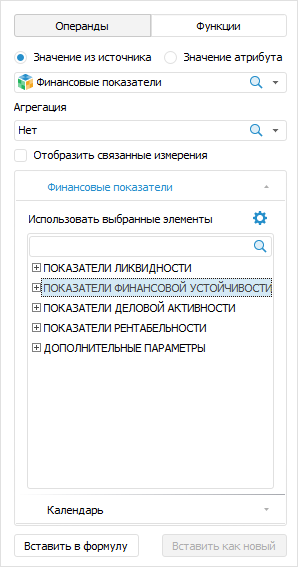 Примечание. Если календарная динамика операнда отличается от календарной динамики формулы расчёта, то в результате расчёта формулы данные будут рассчитаны по календарной динамике формулы.