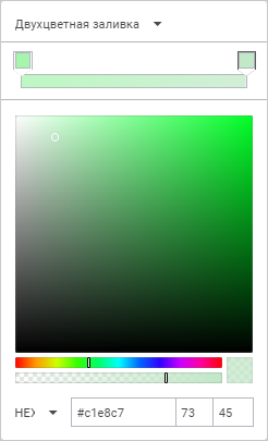 для двухцветной заливки в цветовой палитре выберите цвет или задайте его в формате RGB или HEX для начала и конца градиента;