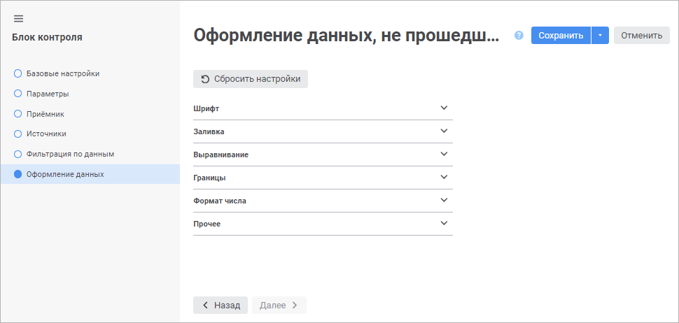 Для настройки стиля оформления используйте страницу «Оформление данных не прошедших контроль» в мастере редактирования блока контроля: